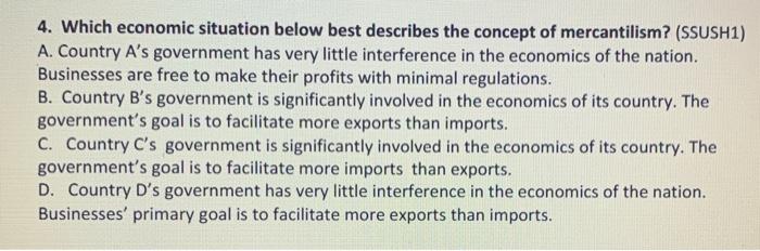 The economic policies of Jean-Baptiste Colbert Louis XIVs controller general of finances. Mercantilism is best described as an example of a command economy. Country Bs government is significantly involved in the economics of its country.